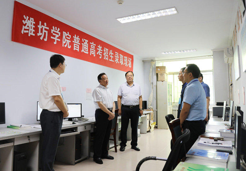 7月20日,党委书记李东、校长冯滨鲁到学校普通高考招生录取现场检查指导招生录取工作,亲切慰问全体工作人员。