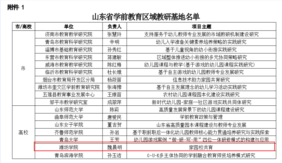 近日,山东省学前教育中心公布了山东省学前教育区域教研基地建设工作名单,我校获批学前教育区域教研基地。本次活动全省共有102个学前教育教研基地进行评选,最终评出区域教研基地17个、幼儿园教研基地16个。