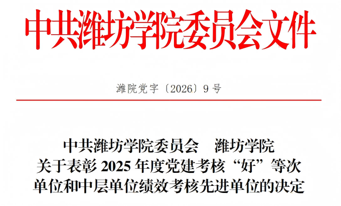 近日,学校党委印发《关于表彰2025年度党建考核“好”等次单位和中层单位绩效考核先进单位的决定》(潍院党字〔2026〕9号),教务处党支部被授予2025年度党建考核“好”等次单位荣誉称号。